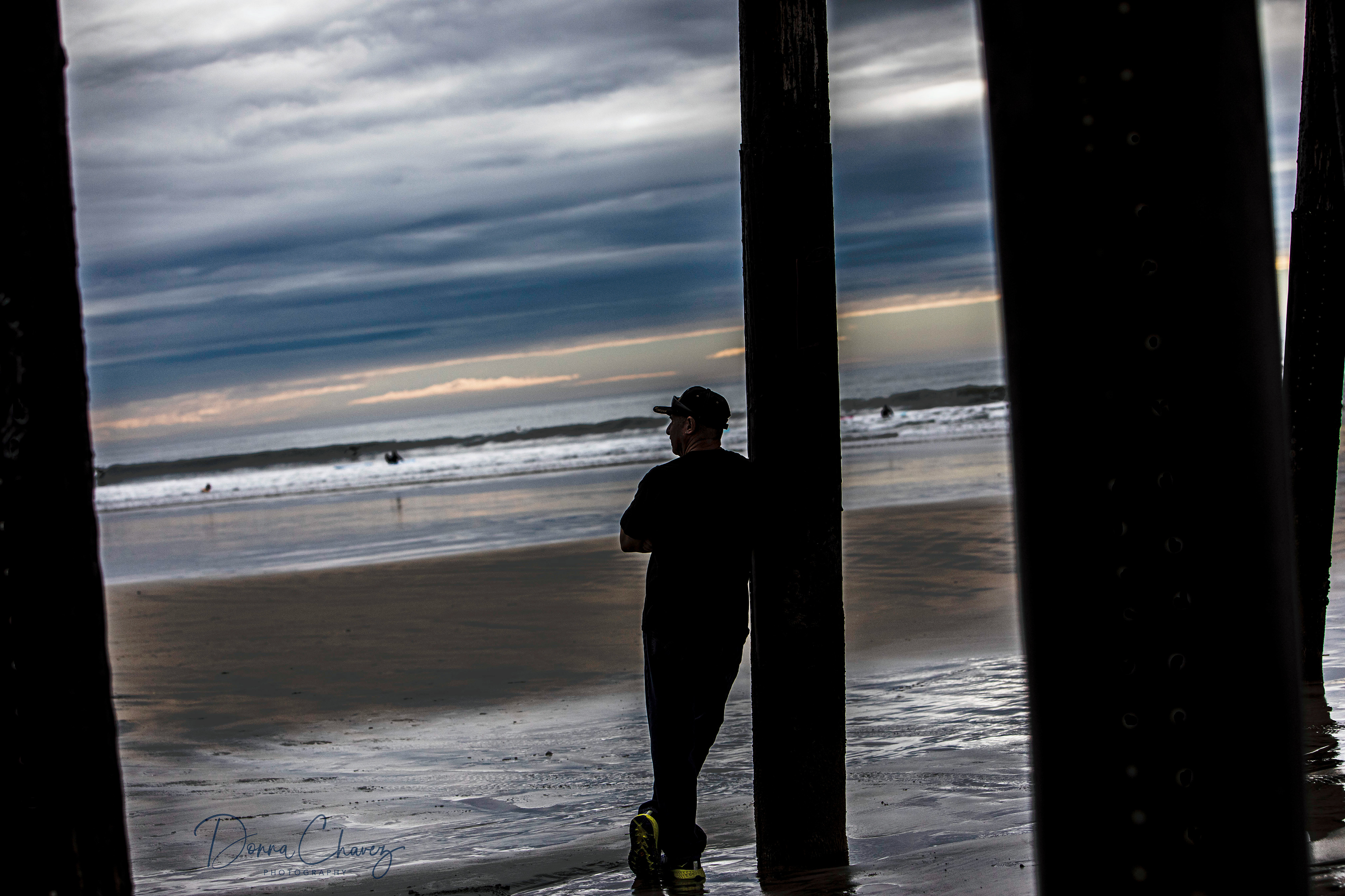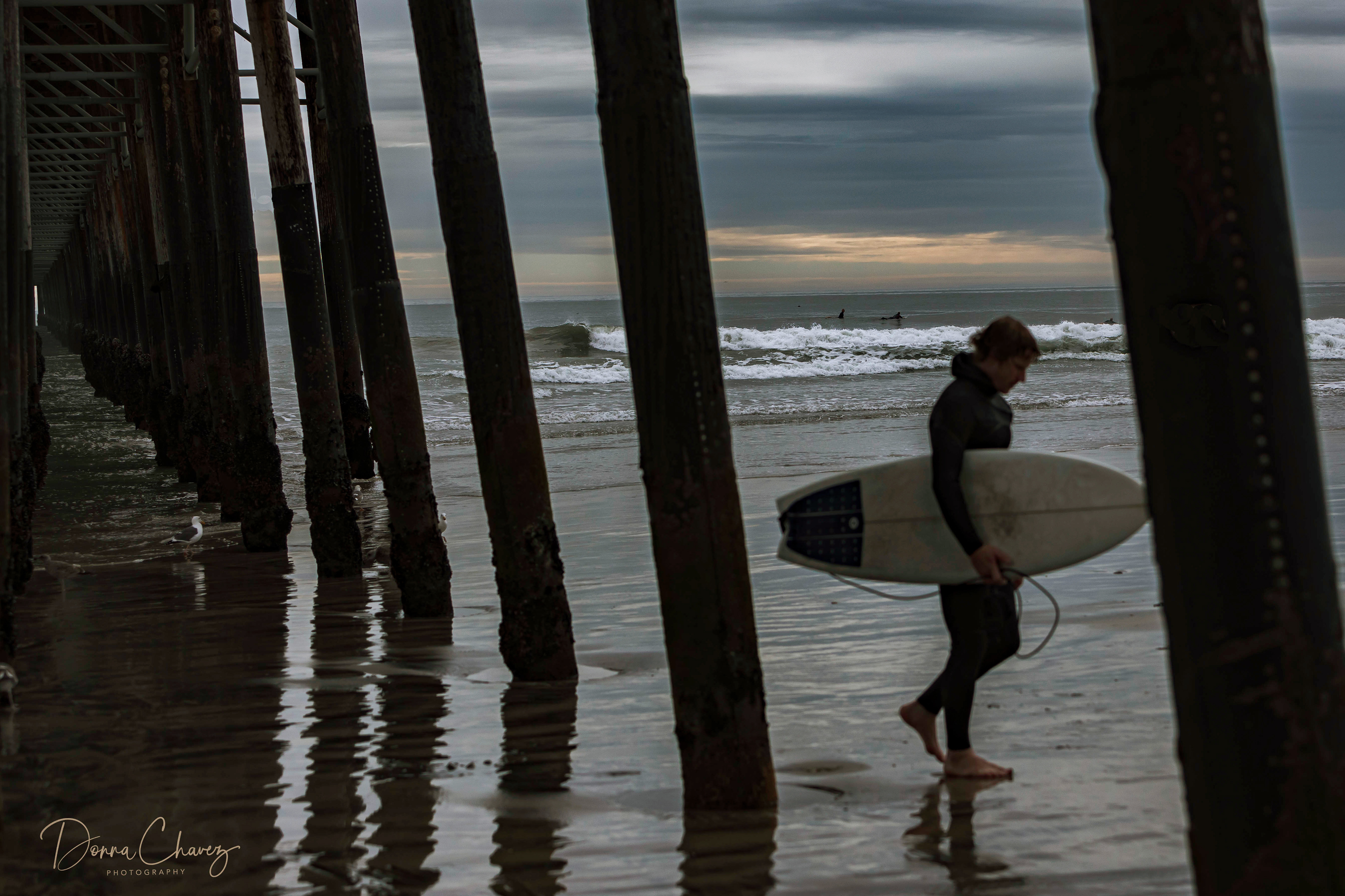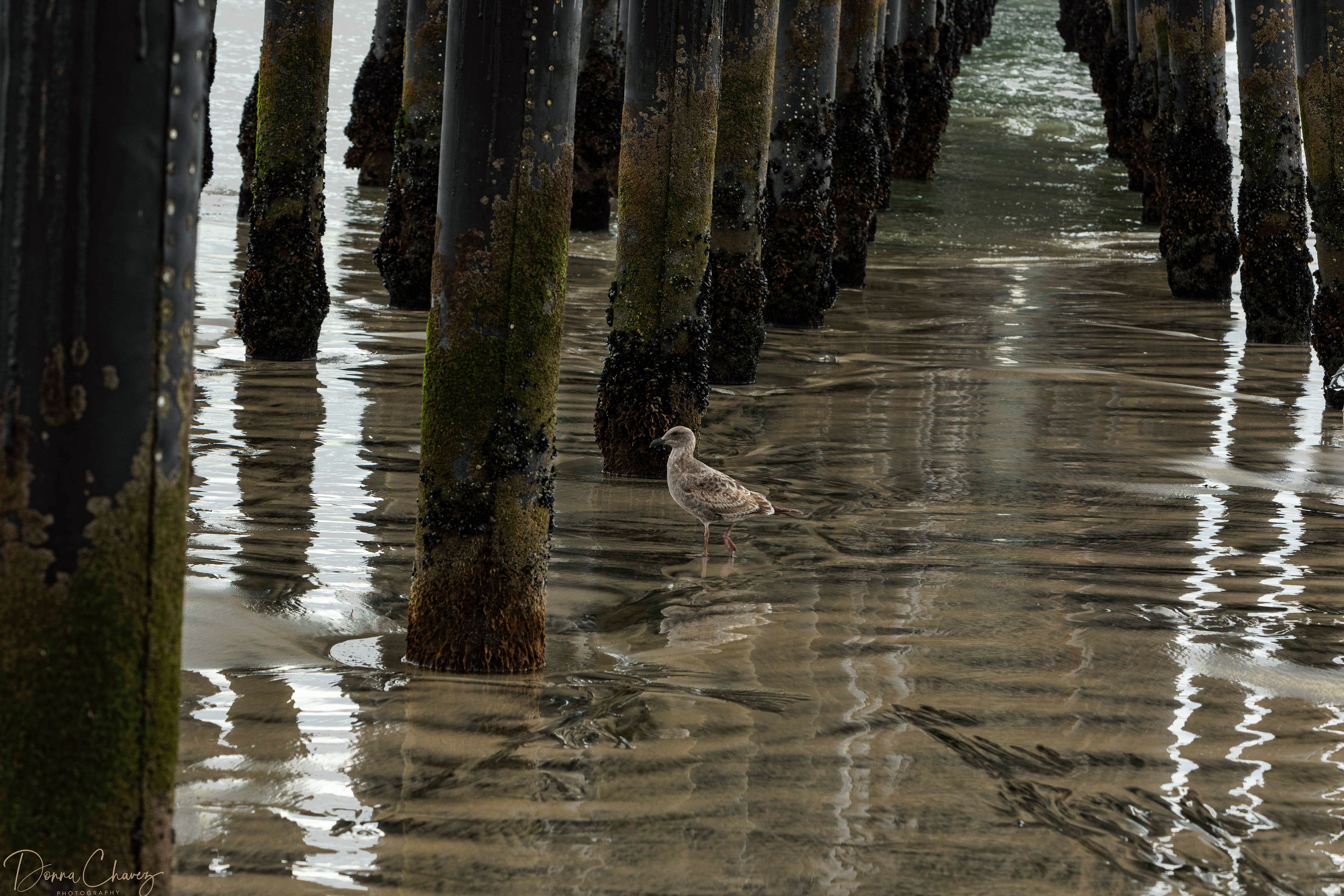 A seagull under the pier.